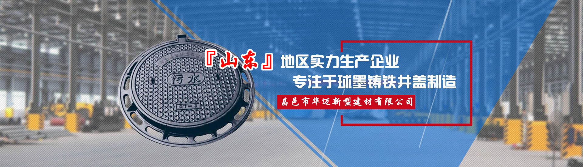 昌邑市華邁新型建材有限公司位于世界風箏之都—山東濰坊,公司前身:昌邑華邁井蓋鑄造廠,這里鑄造產業(yè)集群物流園區(qū)集群、交通便利、緊靠濰坊火車北站、附近眾多物流園。公司主要鑄造產品:球墨鑄鐵井蓋、市政井蓋、污水井蓋、雨水井蓋、六防、五防井蓋、防沉降井蓋、隱形井蓋、電力檢查井蓋、熱力井蓋、窨井蓋、雨水篦子、鑄鐵溝蓋板、鑄鐵花墻等,產品用料厚實壽長。